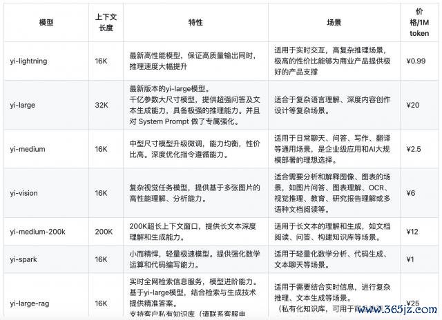 零一万物模子订价。图源:零一万物官网