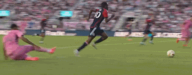 第40分钟,马丁内斯禁区左侧倒三角传球,苏亚雷斯中路停球,左脚抽射告成,1-2!迈阿密外洋扳回一球。