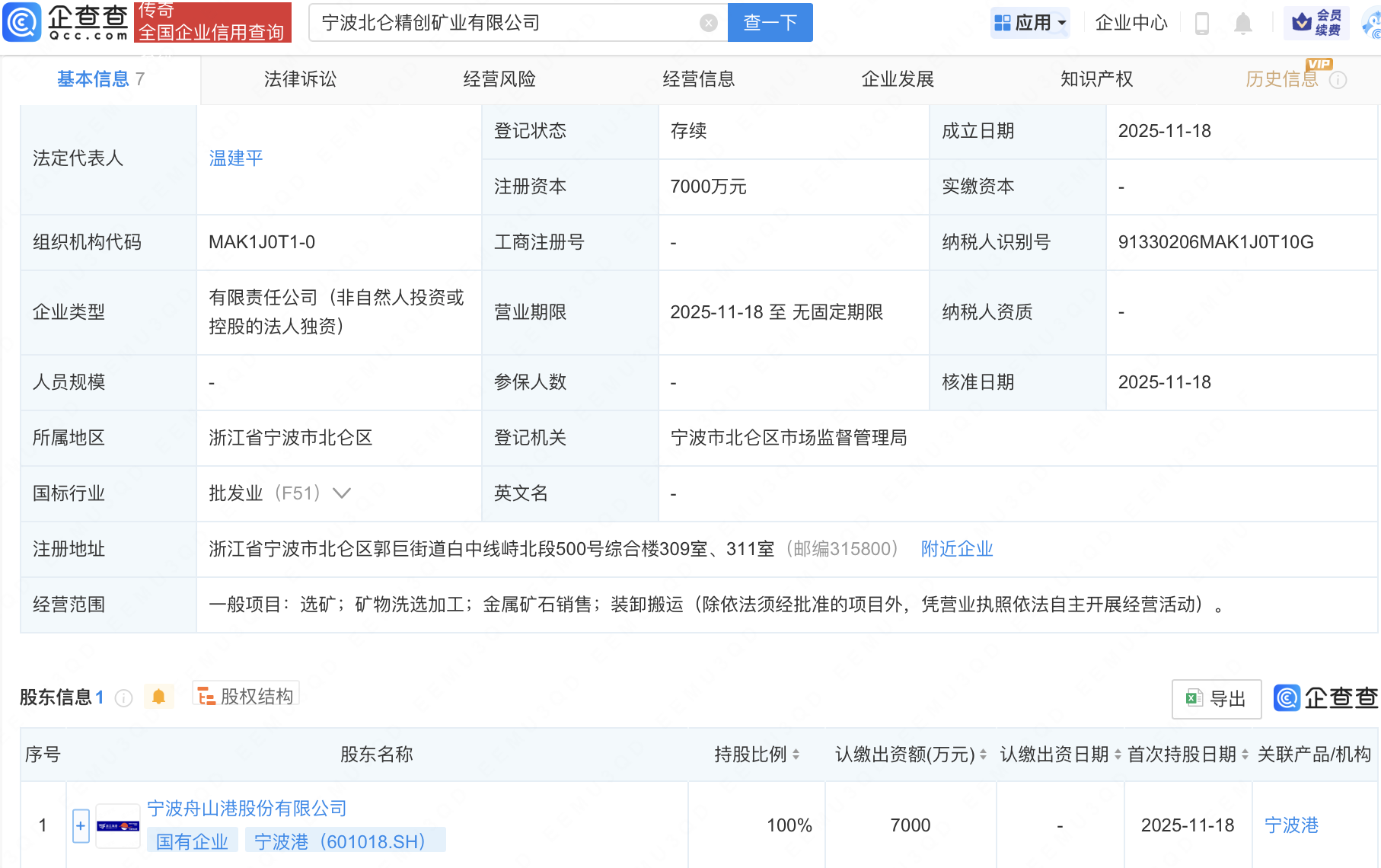近日开云kaiyun,宁波北仑精创矿业有限公司缔造,注册本钱7000万元,计较界限包含:选矿;矿物洗选加工;金属矿石销售;装卸搬运。企查查股权穿透涌现,该公司由宁波港(601018)全资合手股。